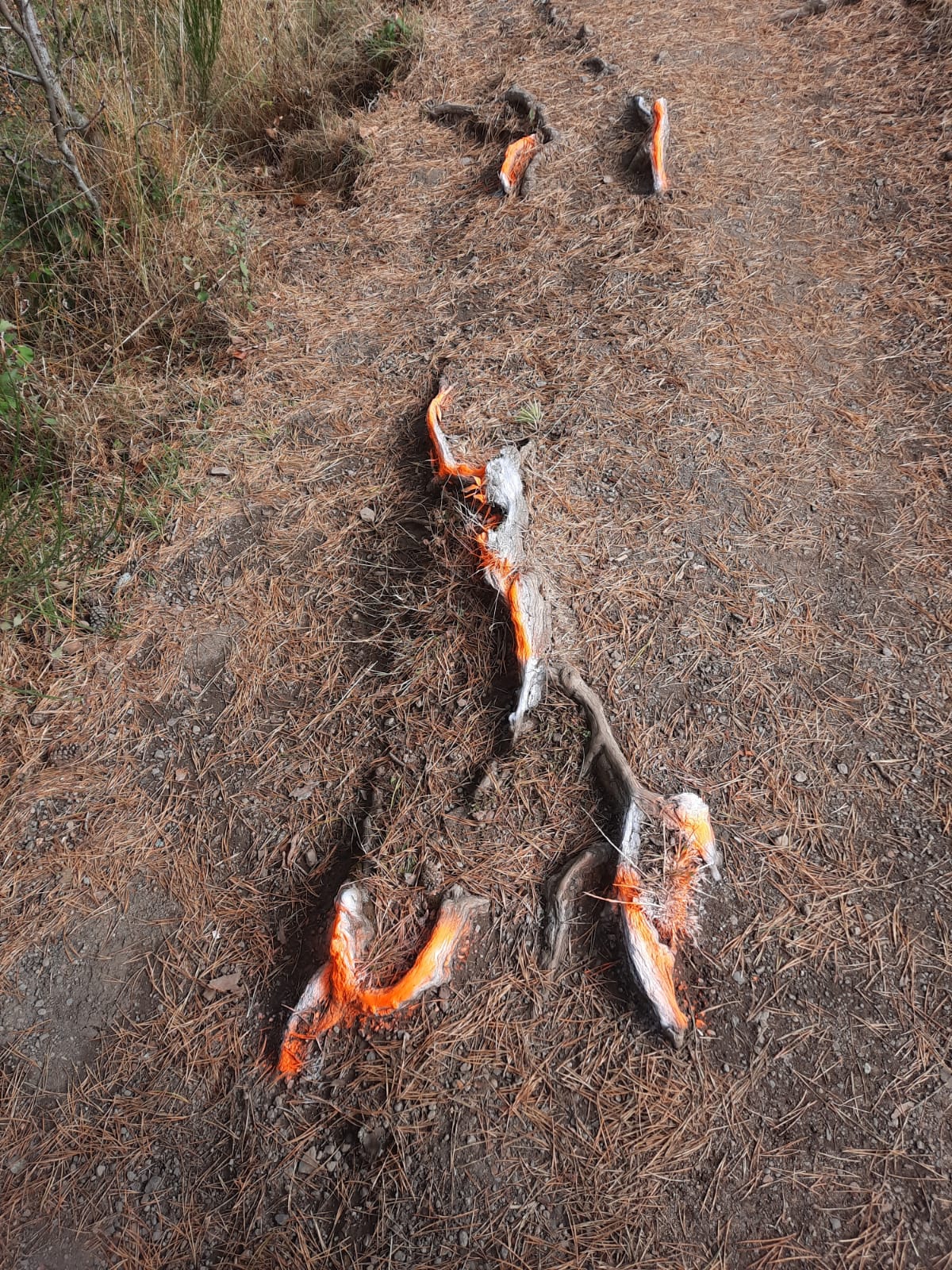 Jede einzelne Wurzel, Randsteine sowie sonstige Gefahrenstellen wurden hier von Hand in Vulcan-Rot angesprayt! Ein eindeutiges Zeichen dafür, dass beim Eifel Vulkan Bike Marathon Sicherheit groß geschrieben wird. Hier weiß man nicht nur, wo man langfährt, sondern auch, was unbedingt umfahren werden sollte, schon allein wegen des Sütt-bumm-Effektes!